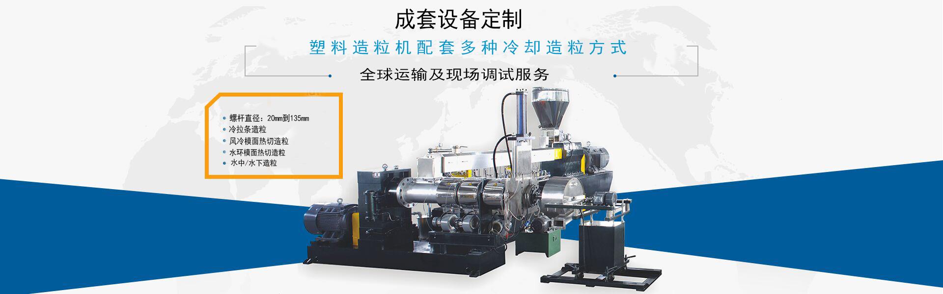 主打設(shè)備:雙螺桿造粒機(jī)PET再生造粒機(jī)PVC造粒機(jī)色母料造粒機(jī) 阻燃母料造粒機(jī)改性料造粒機(jī)水中造粒機(jī)